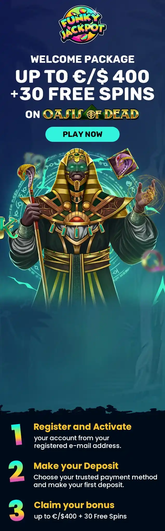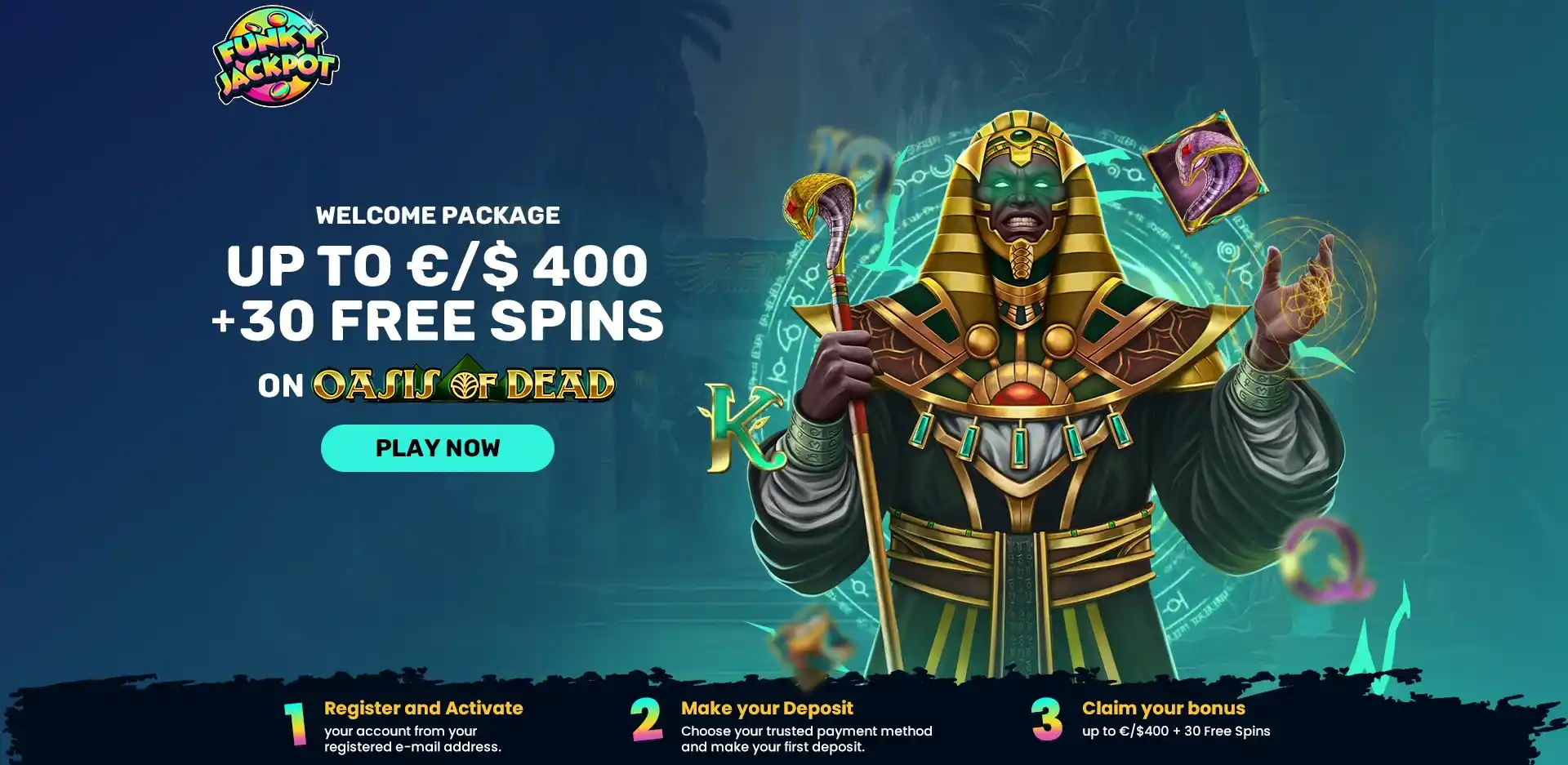 - Enjoy our Welcome offer of 100% Welcome Bonus Up To €150 + 30 Free Spins on Oasis of Dead upon making your first deposit.